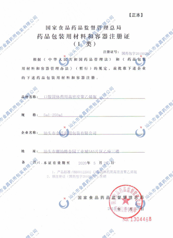 汕頭市金昌藥用包裝有限公司位于廣東省汕頭經(jīng)濟(jì)特區(qū)金園工業(yè)城,是粵東地區(qū)集研發(fā)、設(shè)計(jì)、制造于一體的專業(yè)食品、藥品包裝材料大型生產(chǎn)企業(yè),也是申領(lǐng)的國(guó)家藥品監(jiān)督管理局注冊(cè)換證單位和QS認(rèn)證單位。現(xiàn)有標(biāo)準(zhǔn)工業(yè)廠房及潔凈廠房。生產(chǎn)環(huán)境嚴(yán)格按GMP十萬級(jí)潔凈要求設(shè)計(jì),配備獨(dú)立的物理、生化、菌檢化驗(yàn)室。采用全自動(dòng)注塑、吹塑成型生產(chǎn)線,配套各種規(guī)格的模具數(shù)百套。